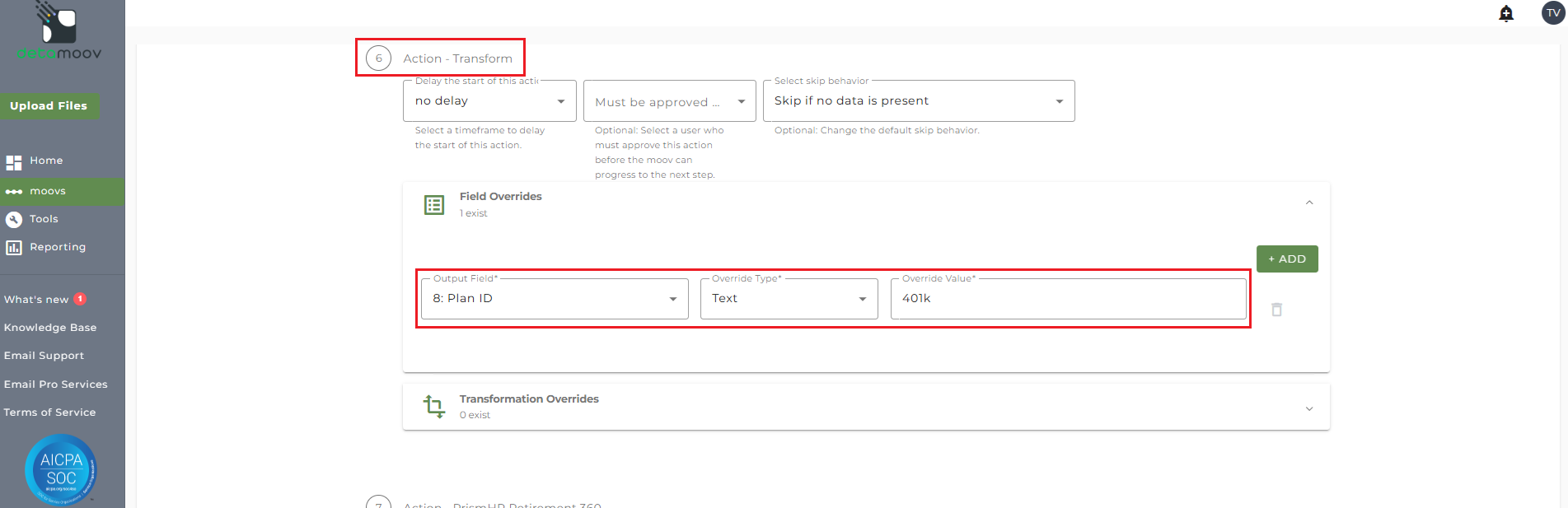 NOTE: There are 3 separate Transform steps on the Fidelity Loan Feedback to PrismHR moov. Make sure are you creating the field override on step 6 Action Transform.