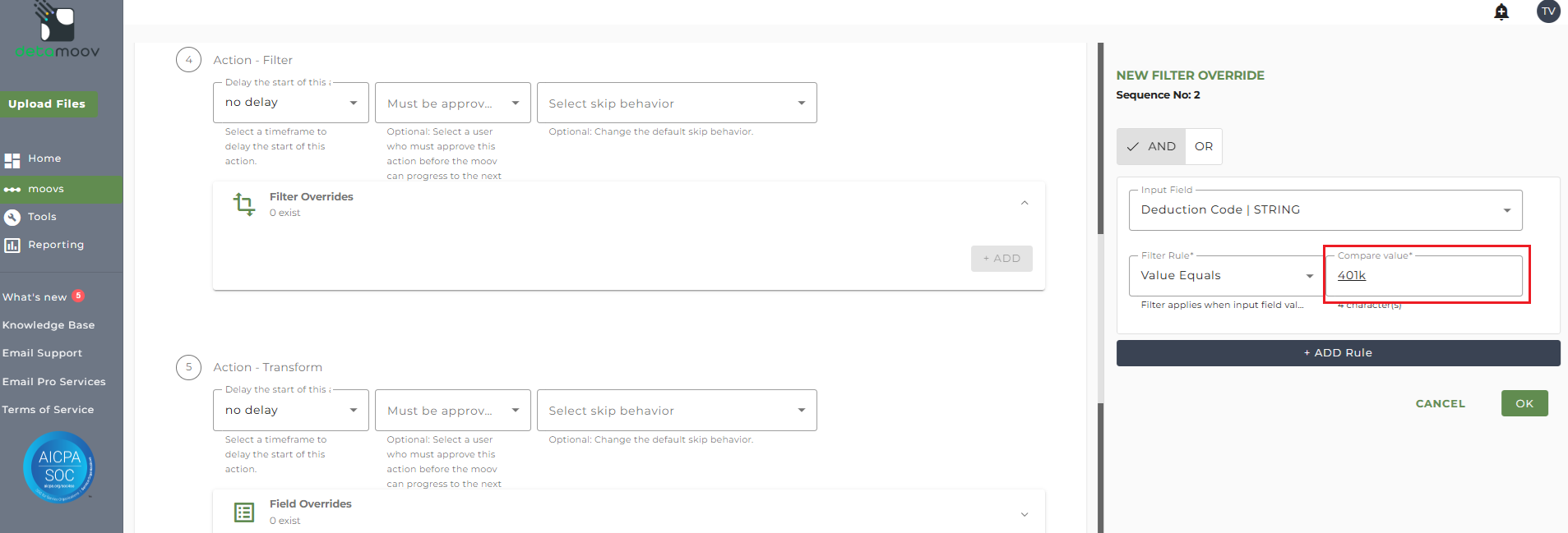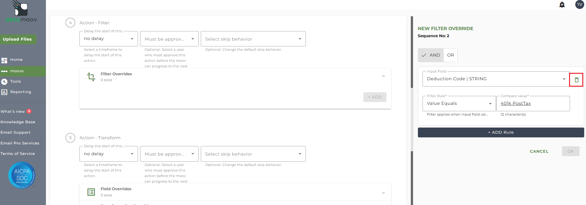 Note: The Fidelity Deduction Feedback to UKG moov contains 4 separate Transform steps. The following information relates to step 7 Action - Transform only.