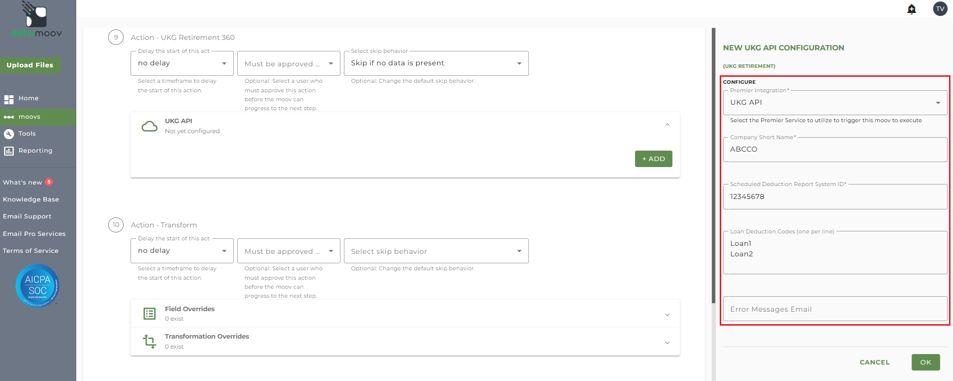 After the UKG Premier Integration has been activated on your account and the SFTP account has been created, please add the Fidelity Loan Feedback to UKG moov to your account by following these steps.