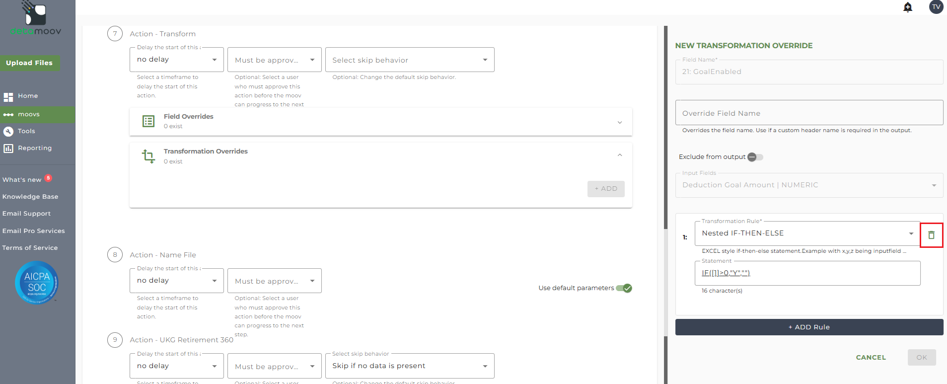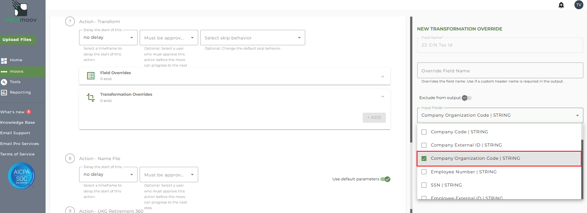 Note: The Fidelity Loan Feedback to UKG moov contains 3 separate Transform steps. The following information relates to step 7 Action - Transform only.
