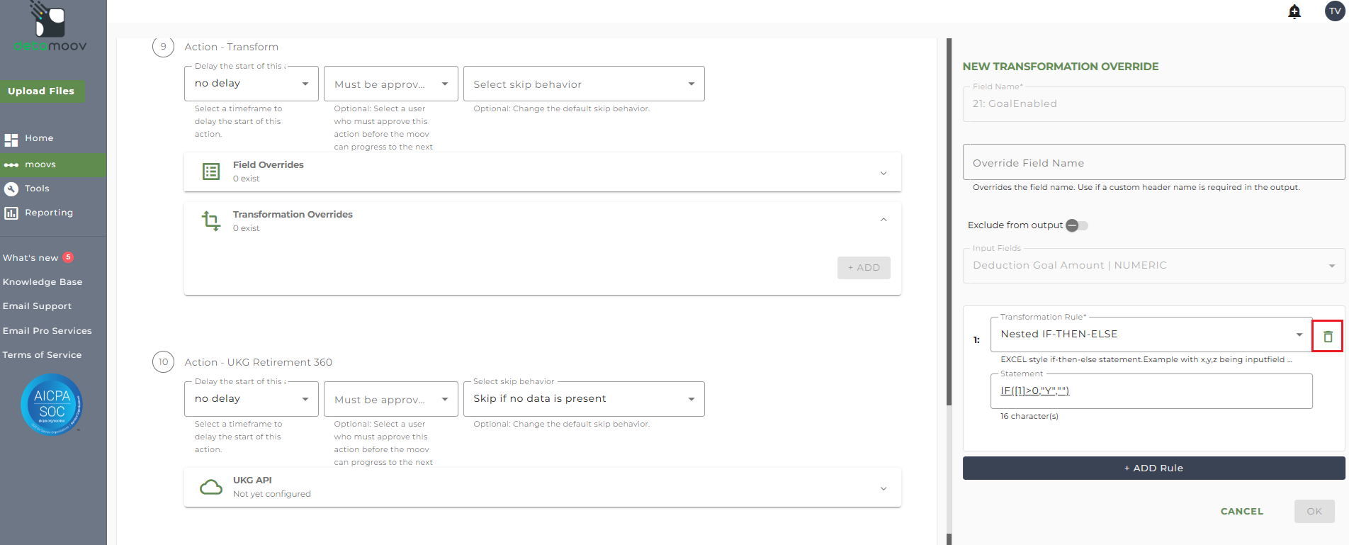 Note: The Epic Deduction Feedback to UKG moov contains 4 separate Transform steps. The following information relates to step 9 Action - Transform only.