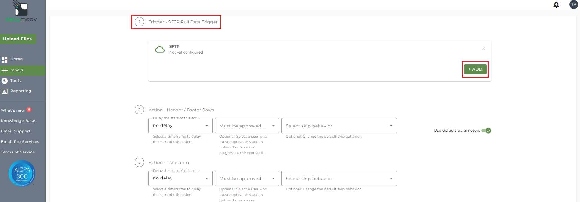 To automate the 360 integration, configure the SFTP schedule. Click the SFTP banner under the Trigger - SFTP Pull Data Trigger step and click Add.
