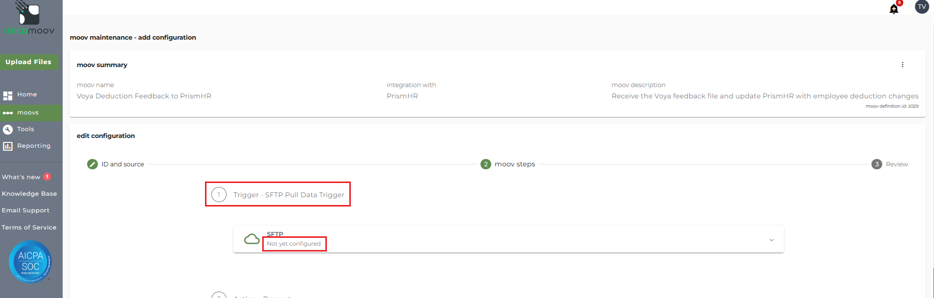 Configuring the Voya Deduction Feedback to PrismHR moov