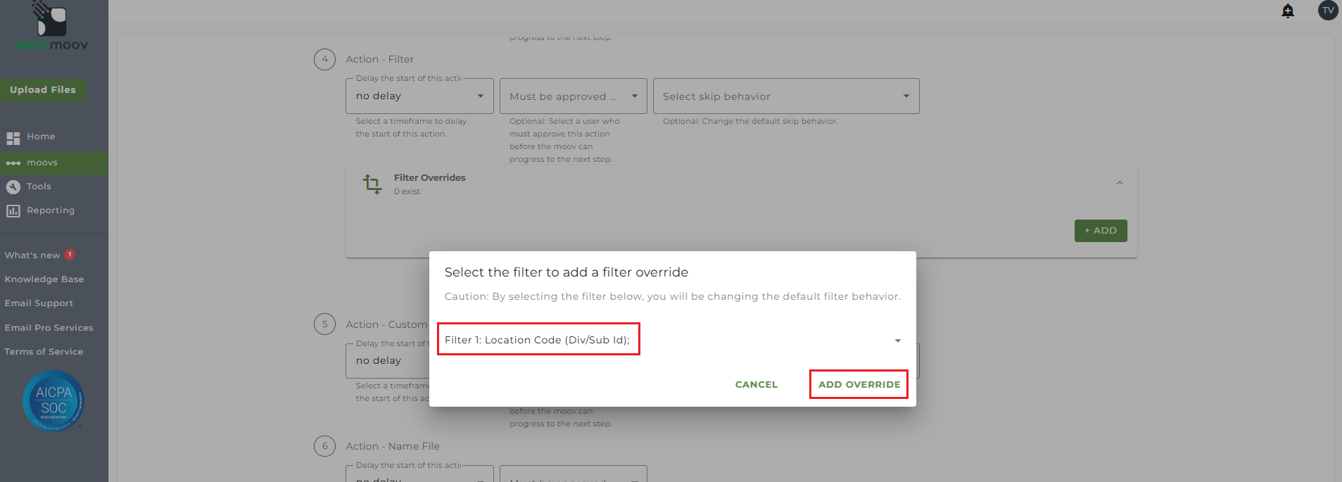 Then select Filter 1: Location Code (Div/Sub Id) and click ADD OVERRIDE.
