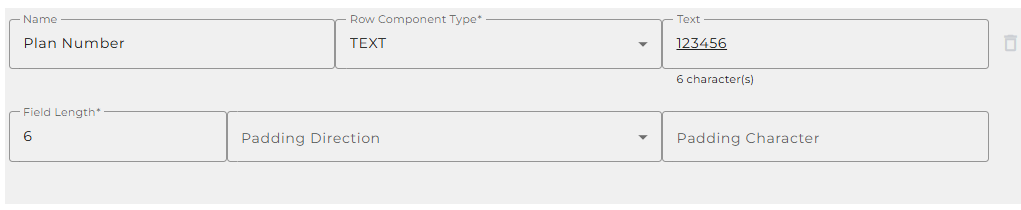 If you do not store the Plan ID in payroll, override the Plan # field on the footer row. Locate the Plan # component and change the Row Component type to Text.  Then enter in your client's Plan ID in the Text field.
