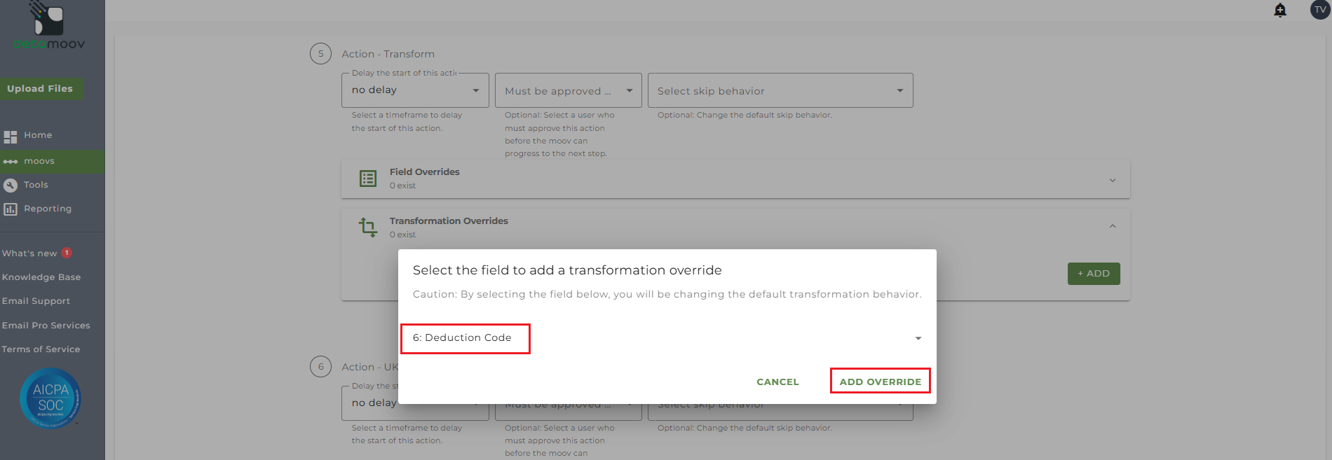 Then select field 6: Deduction Code and click ADD OVERRIDE.
