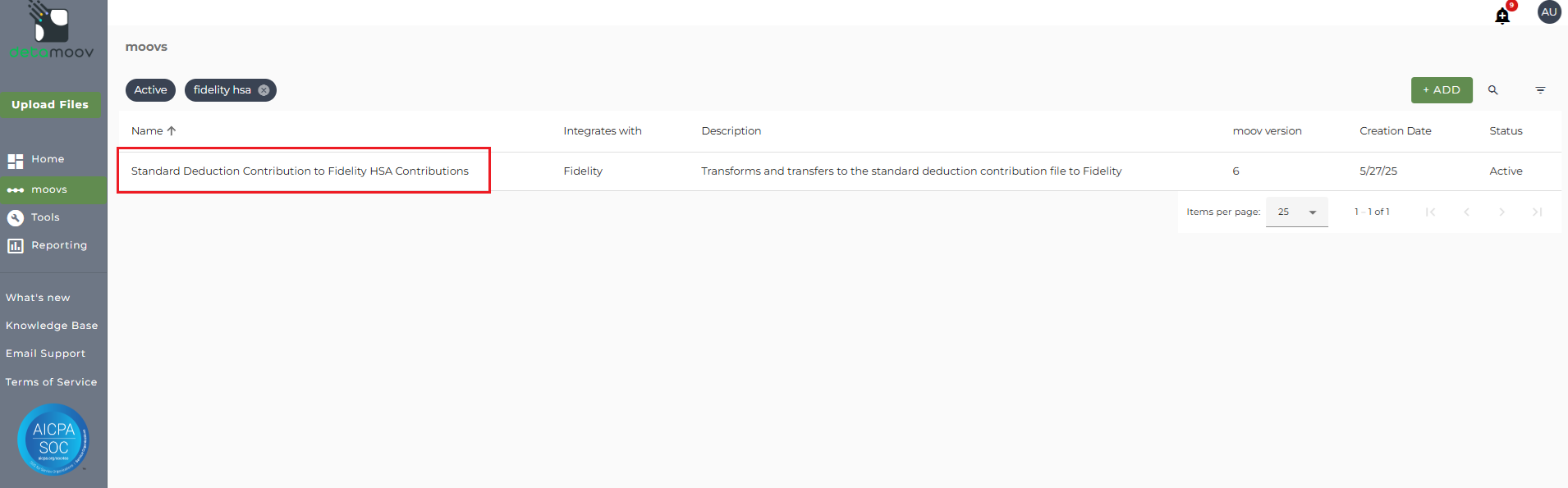 Once the Standard Deduction Contribution to Fidelity HSA Contributions moov has been added to your account, access the moovs section on the left side menu and click on the Standard Deduction Contribution to Fidelity HSA Contributions moov.