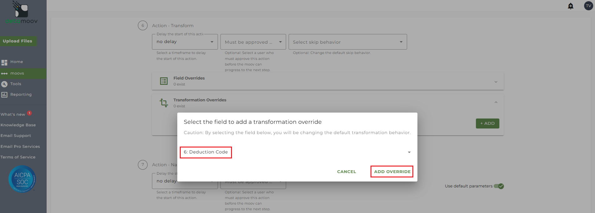 Then select field 6: Deduction Code and click ADD OVERRIDE.