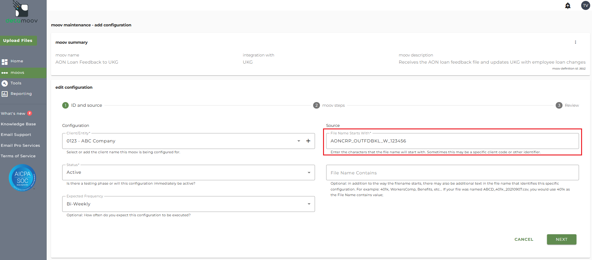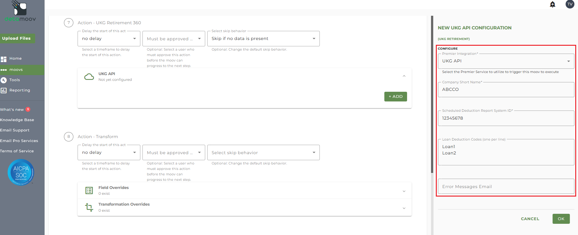 This article describes how to configure a client for the AON Loan Feedback to UKG moov definition used for 360 integration. Each client configuration will vary based on their plan specification and will need to be configured accordingly.