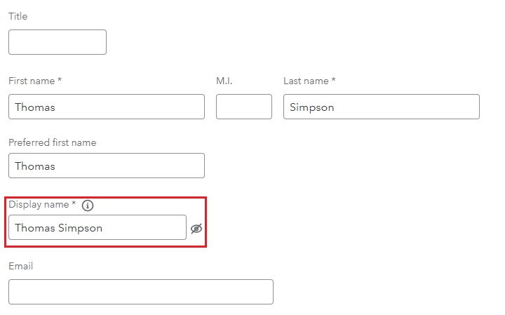 If a NAME value is received as Last, First, the Display Name in QBO will be set as "Last, First"