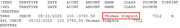 Example of the NAME file of an IIF file. This field is mapped to the Reference Name field sent to QBO: