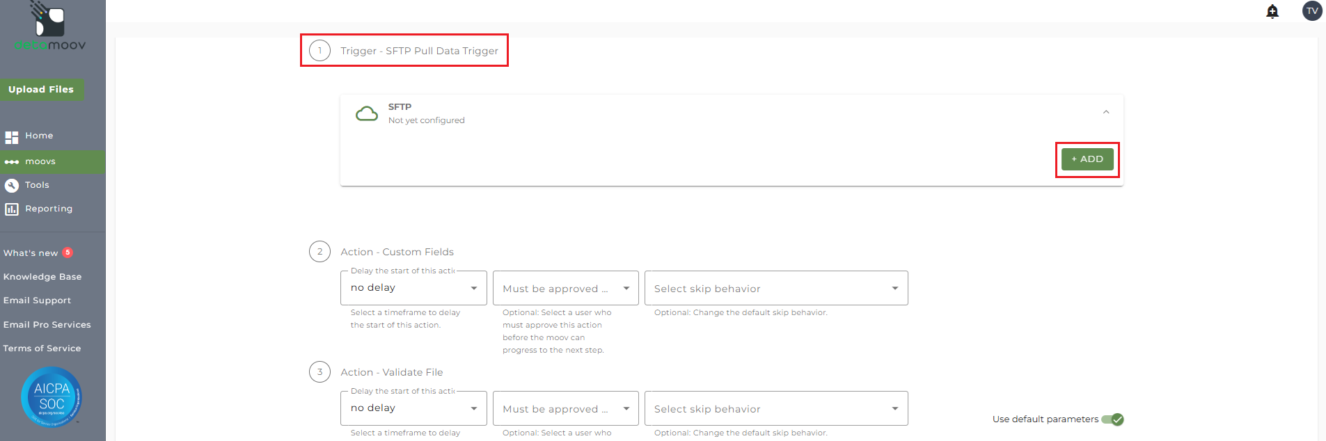 To ensure that the feedback files are pulled, you will need to automate the 360 integration by configuring the SFTP schedule. Click the SFTP banner under the Trigger - SFTP Pull Data Trigger step and click Add.