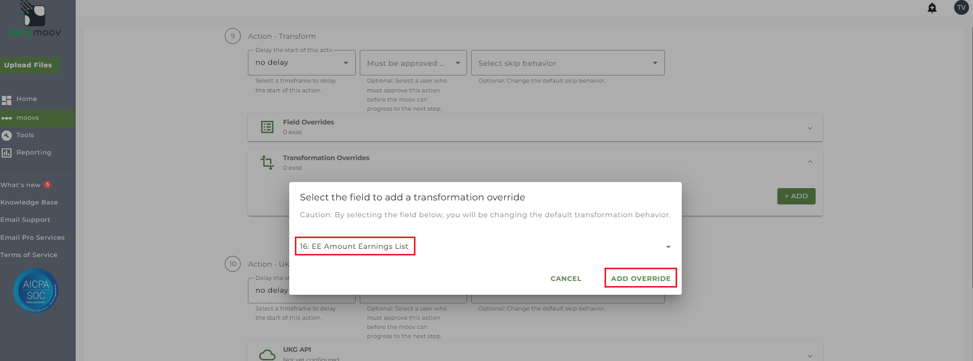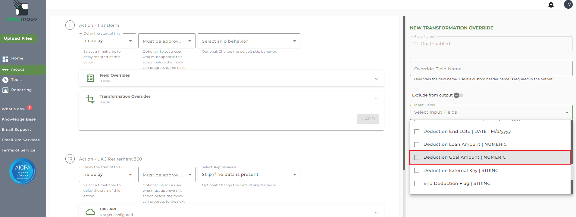 Note: The John Hancock Enterprise Deduction Feedback to UKG moov contains 3 separate Transform steps. The following information relates to step 9: Action - Transform only.