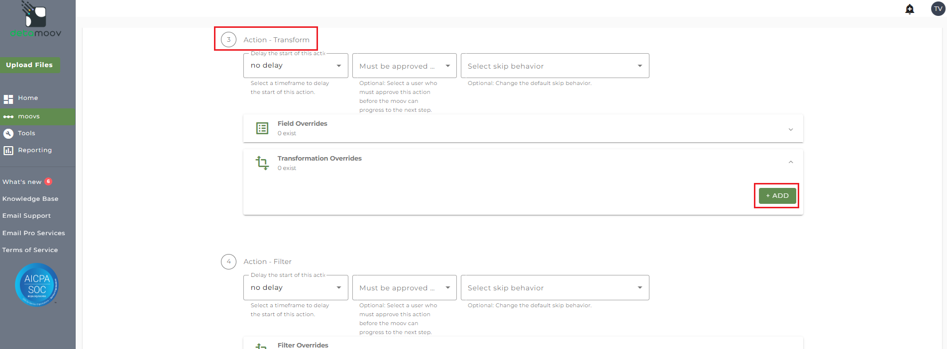 To create a transformation override locate step 3: Action Transform and expand the Transformation Overrides section.