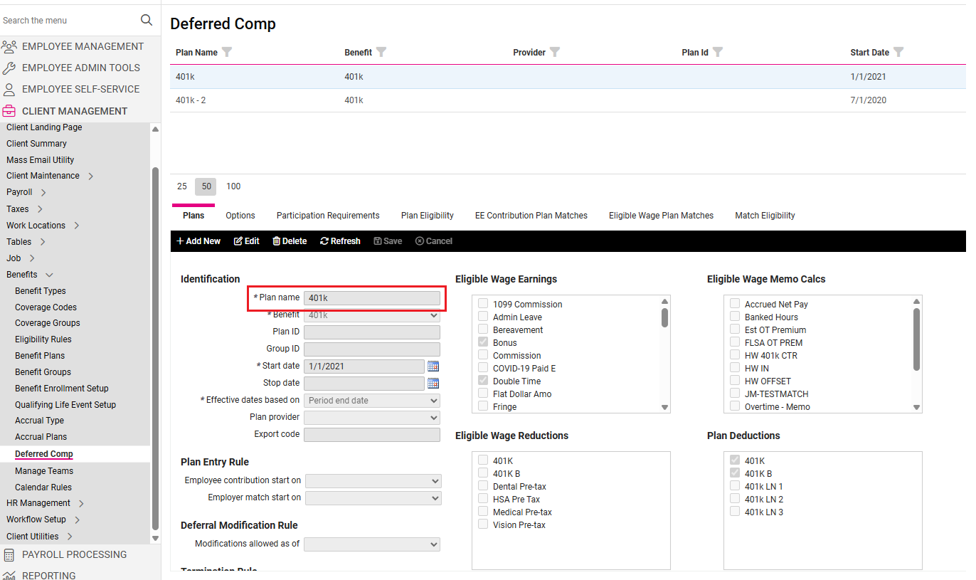 On the side panel that appears, in the Replacement Groups field, replace the right side of 401k| with your client's deduction code.