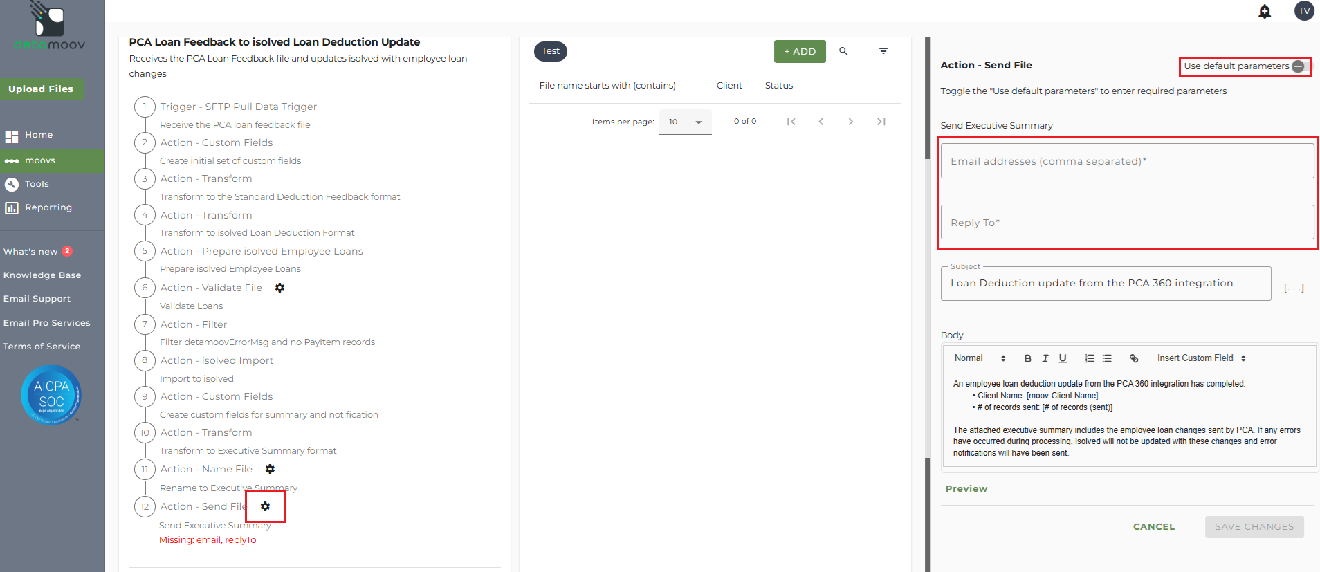 The PCA Loan Feedback to isolved Loan Deduction Update moov provides a notification once the moov is complete with a summary of the deduction changes that were made in isolved. The notification can be sent to any email address you wish and can also be configured to send to multiple email addresses.