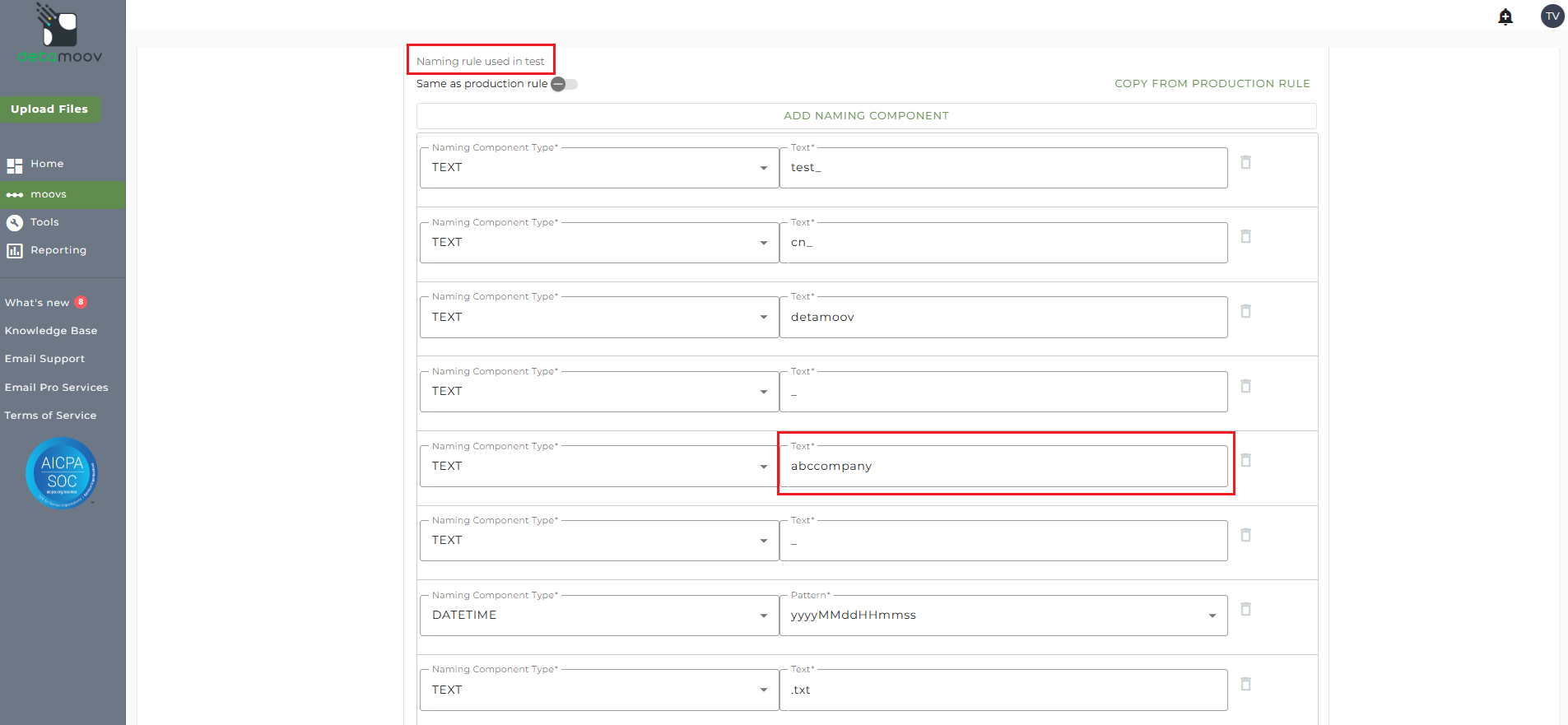 File Name Starts With - typically the client or company code within your payroll platform. The value entered into this field is important as the file you send to detamoov must start with this value.