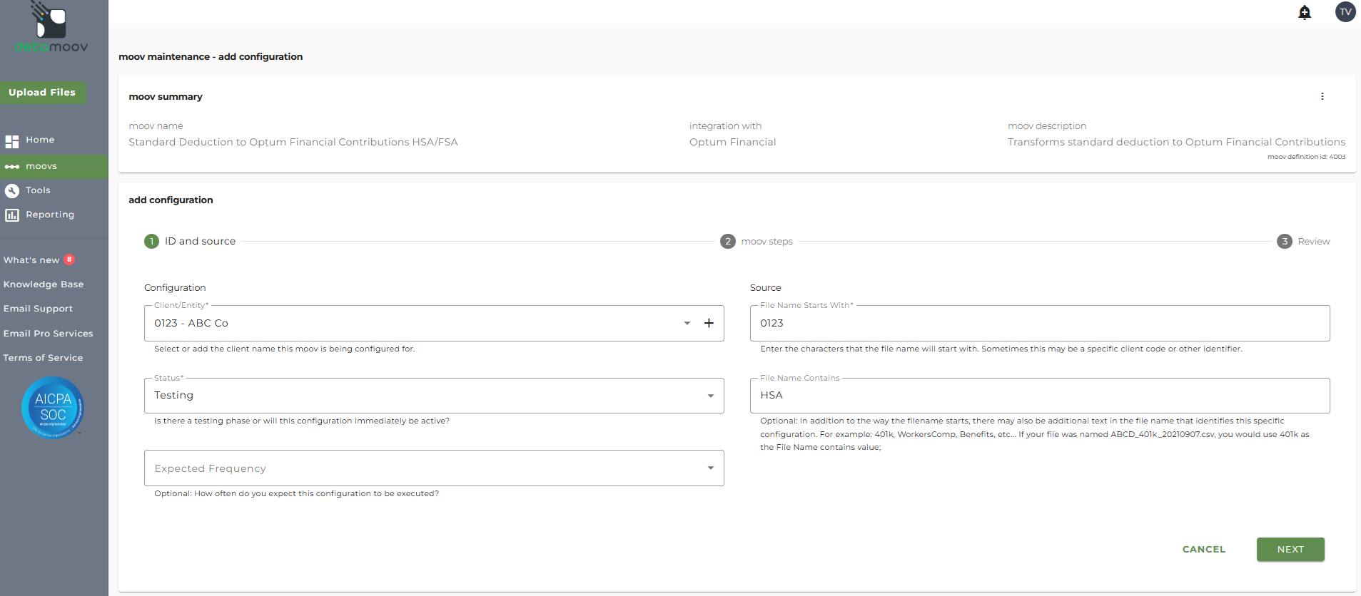 This article describes how to configure a client for the Standard Deduction to Optum Financial HSA/FSA Contributions moov definition. Each client configuration will vary based on their plan specification and will need to be configured accordingly.