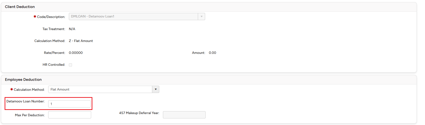 Importance of the Detamoov Loan Number field on the PrimePay GPAY Employee Deduction