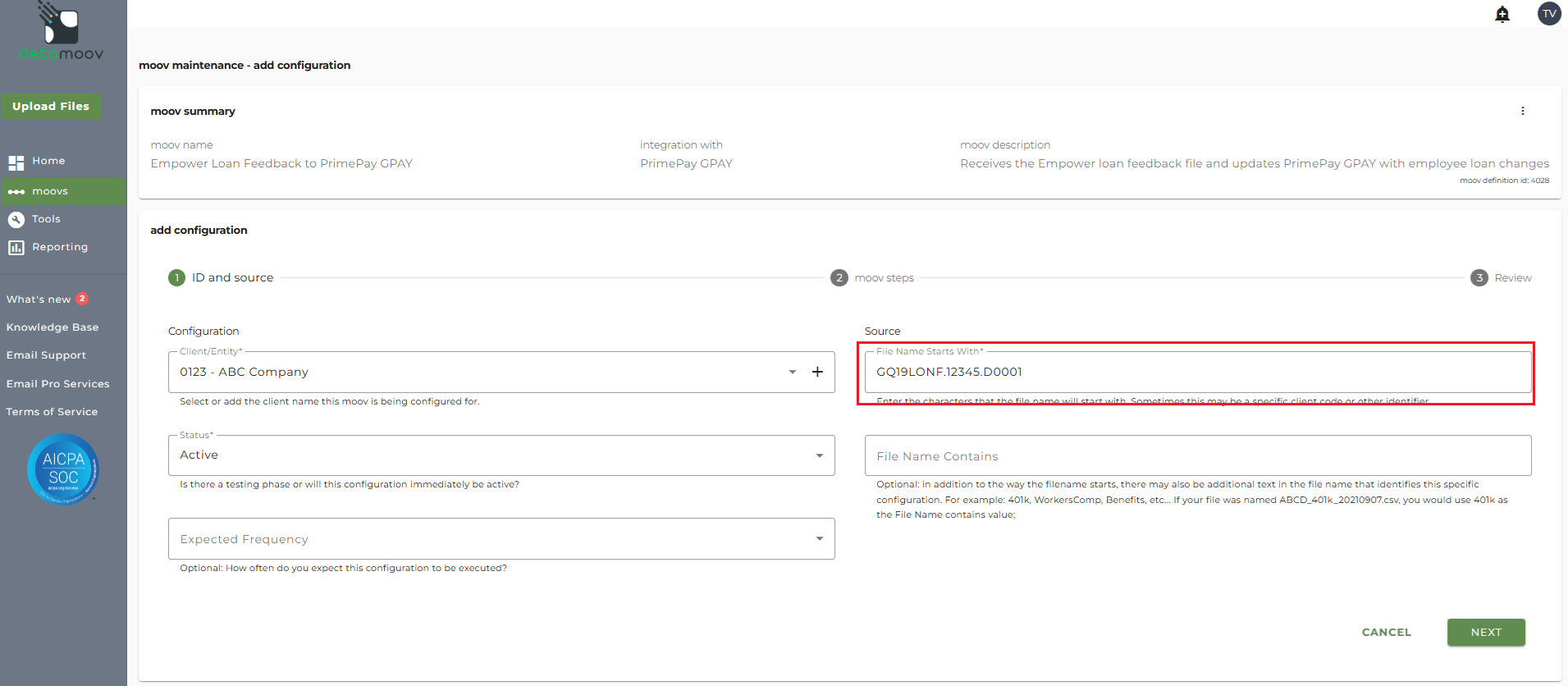 This article describes how to configure a client for the Empower Loan Feedback to PrimePay GPAY moov definition used for 360 integration. Each client configuration will vary based on their plan specification and will need to be configured accordingly.