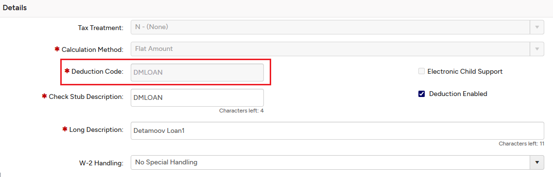 When a loan deduction record is included in the feedback file from Ascensus, the Loan ID is required to map to the Detamoov Loan Number field in PrimePay GPAY. This is important when an existing loan deduction is either modified or a request to end the loan is sent from Ascensus. If the Loan ID does not match the existing loan deduction's Detamoov Loan Number field in PrimePay GPAY, a new loan deduction will be created instead of modifying or ending the existing loan deduction. If the Loan ID field is blank, it creates a new loan deduction in PrimePay GPAY with a blank Detamoov Loan Number on the Employee Deduction.