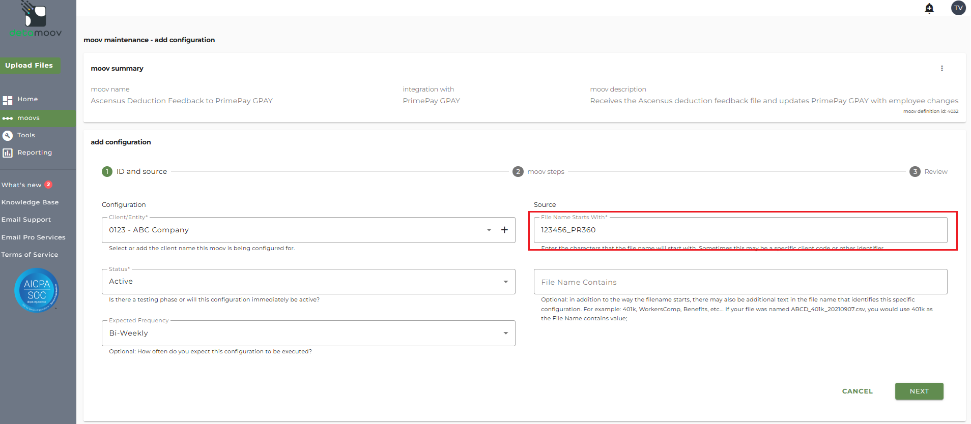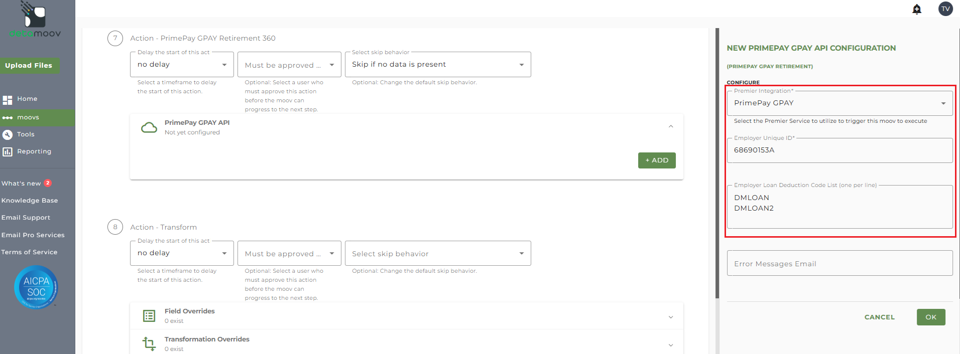 This article describes how to configure a client for the Ascensus Deduction Feedback to PrimePay GPAY moov definition used for 360 integration. Each client configuration will vary based on their plan specification and will need to be configured accordingly.