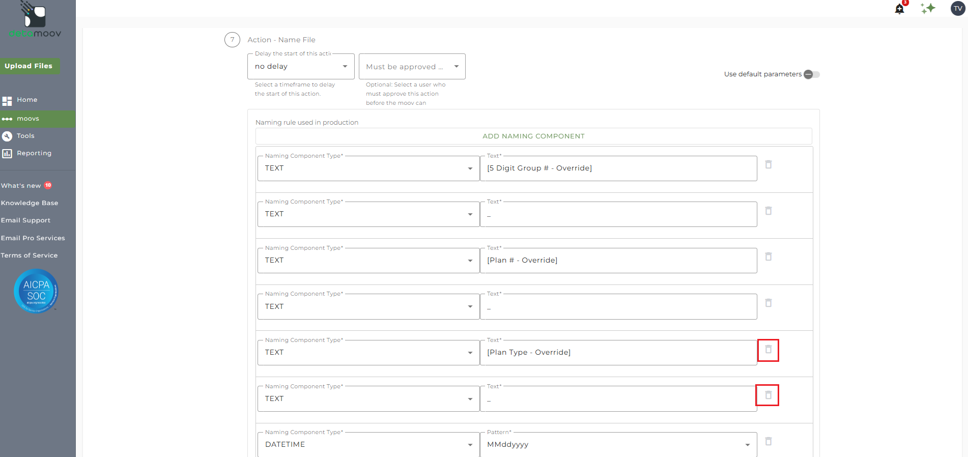 If your client's file name does not have a Plan Type, delete the "[Plan Type - Override]' component and the underscore component below it.