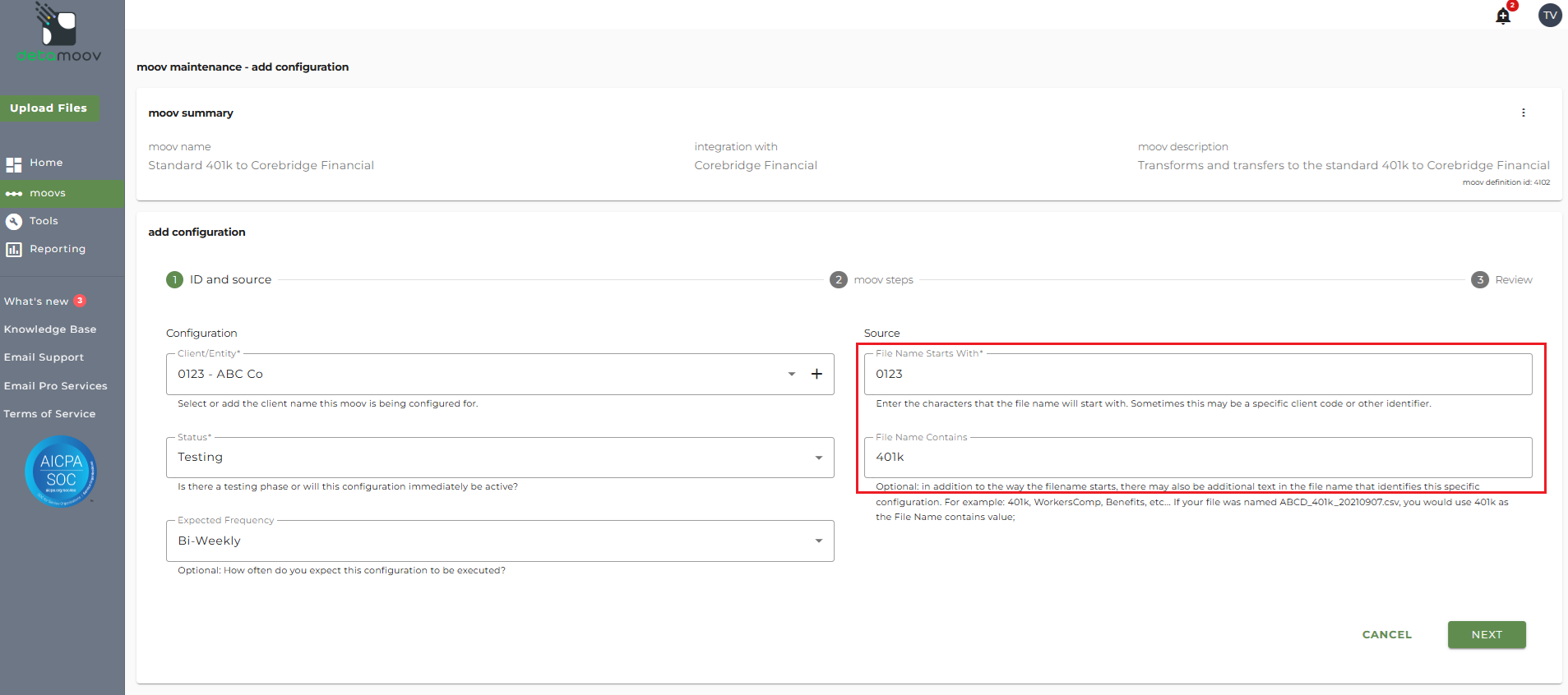 This article describes how to configure a client for the Standard 401k to Corebridge Financial moov definition. Each client configuration will vary based on their plan specification and will need to be configured accordingly.