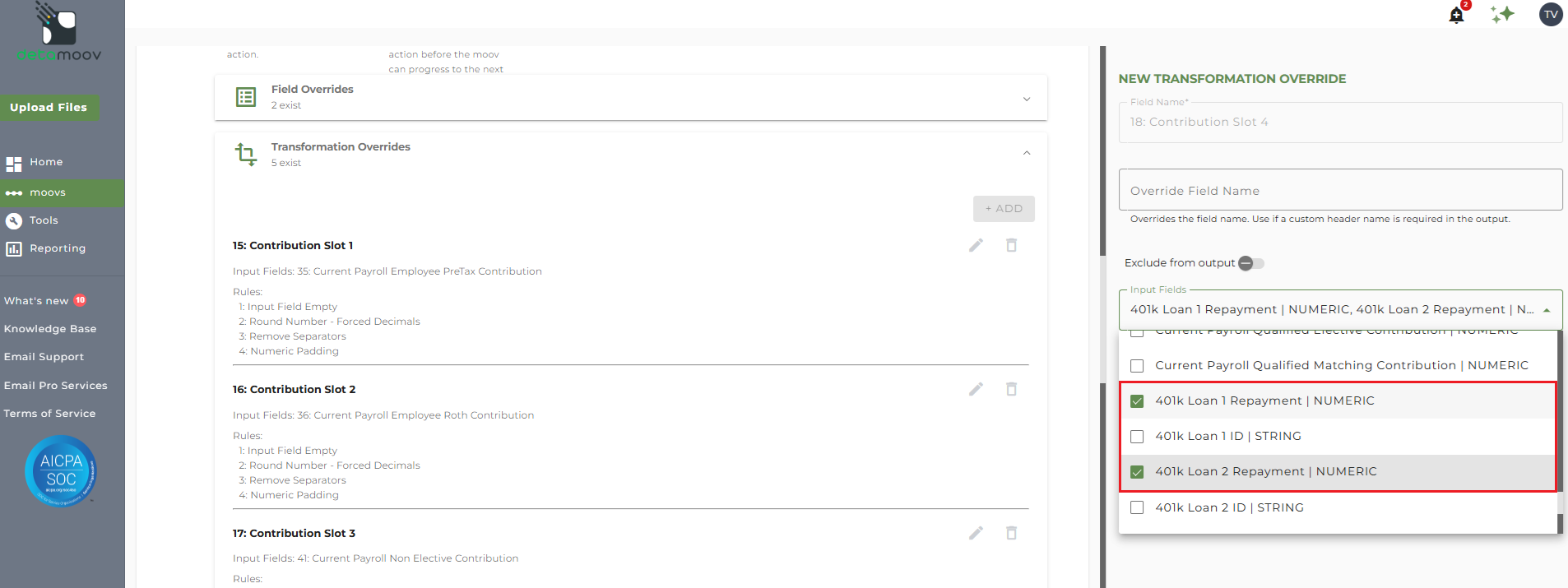 If the plan specifications indicate a loan repayment slot, then the override will need to include both detamoov Loan Repayment fields in case an employee has multiple loans.