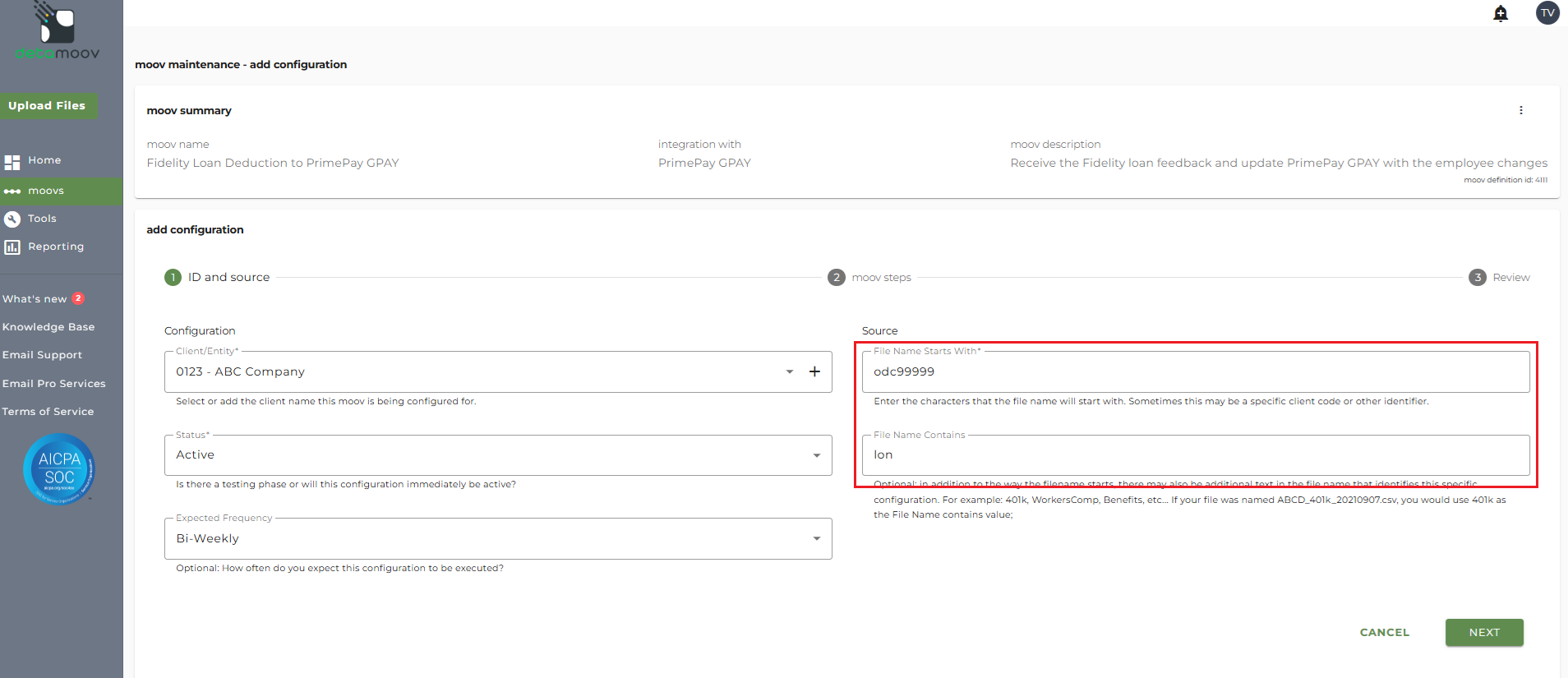 This article describes how to configure a client for the Fidelity Loan Feedback to PrimePay GPAY moov definition used for 360 integration. Each client configuration will vary based on their plan specification and will need to be configured accordingly.