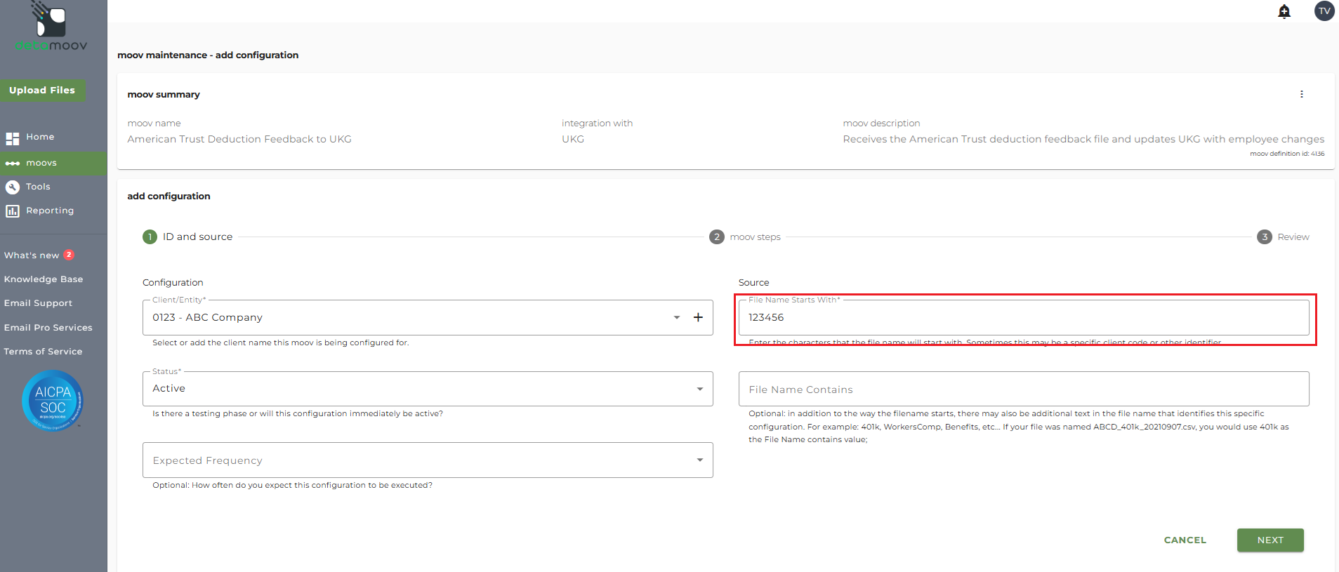 This article describes how to configure a client for the American Trust Deduction Feedback to UKG moov definition used for 360 integration. Each client configuration will vary based on their plan specification and will need to be configured accordingly.