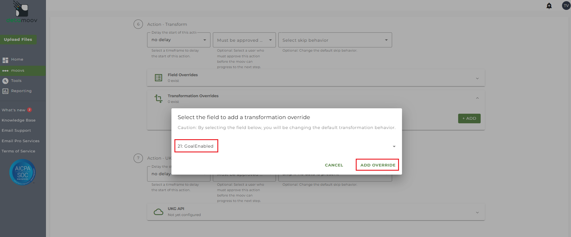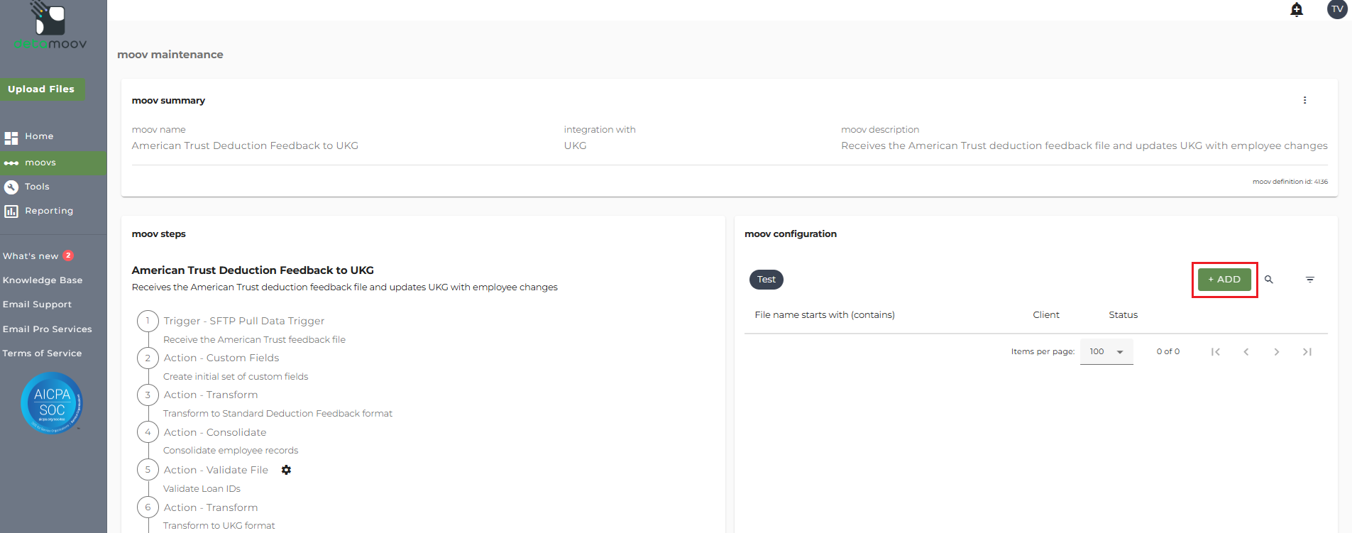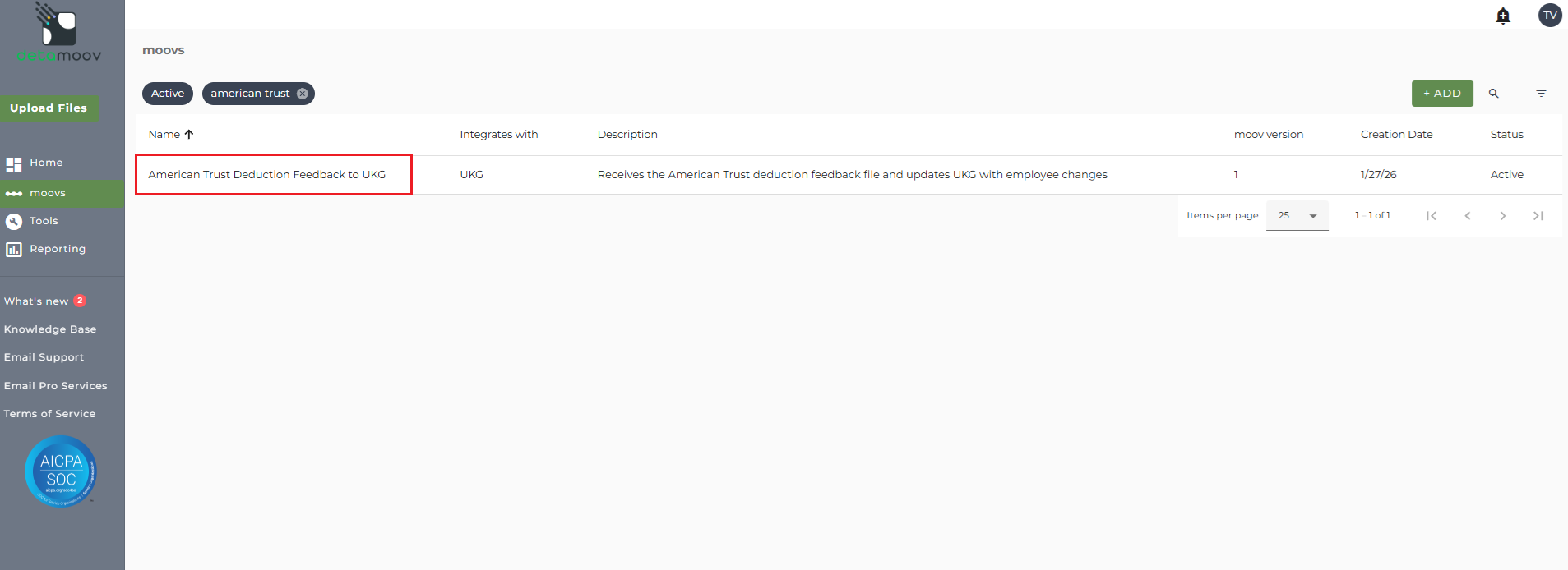 Once the American Trust Deduction Feedback to UKG moov has been added to your account, access the moovs section on the left side menu and click on the American Trust Deduction Feedback to UKG moov.