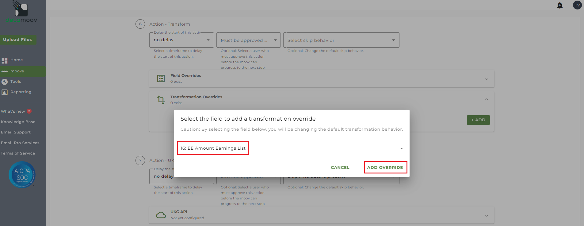 Then select field 16: EE Amount Earnings List and click ADD OVERRIDE.
