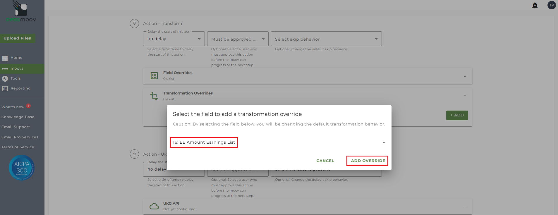 UKG Earnings List Transformation Override