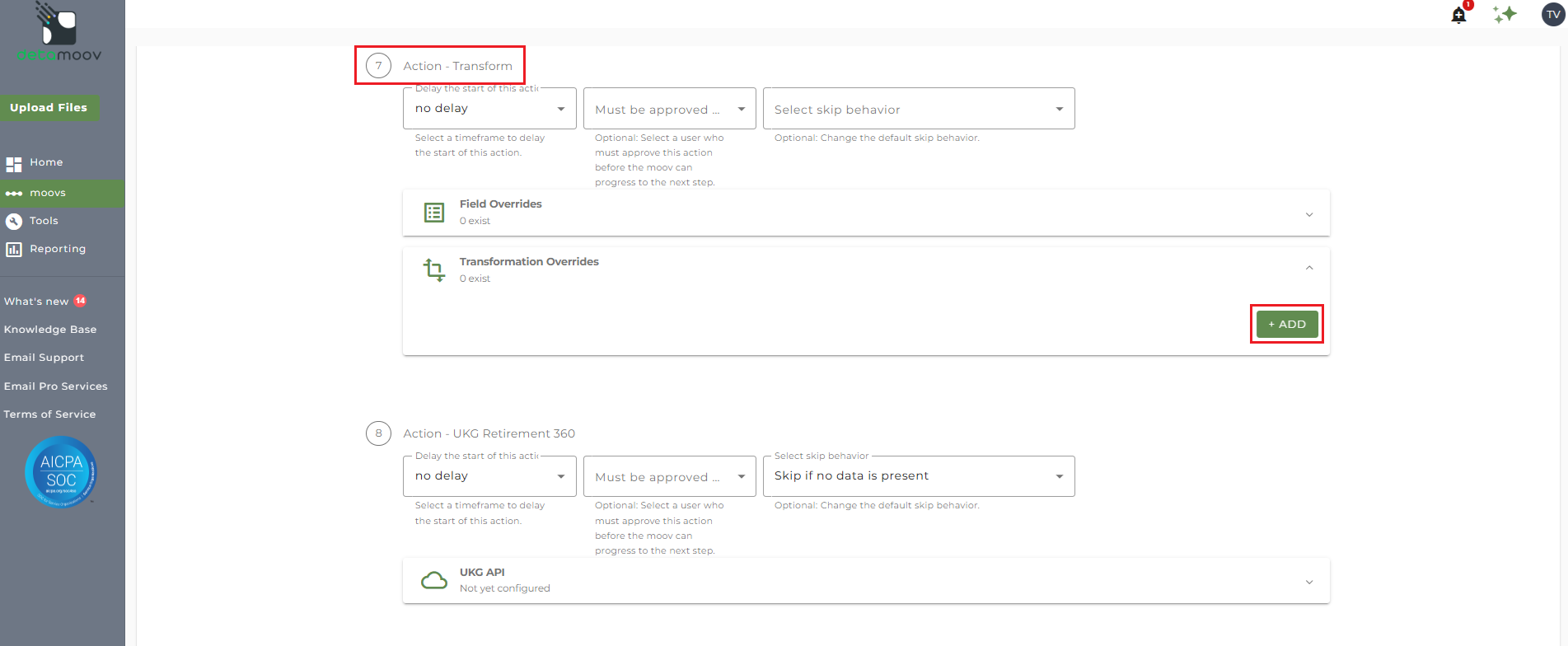 Note: The ADP Connect Deduction Feedback to UKG moov contains 3 separate Transform steps. The following information relates to step 7: Action - Transform only.