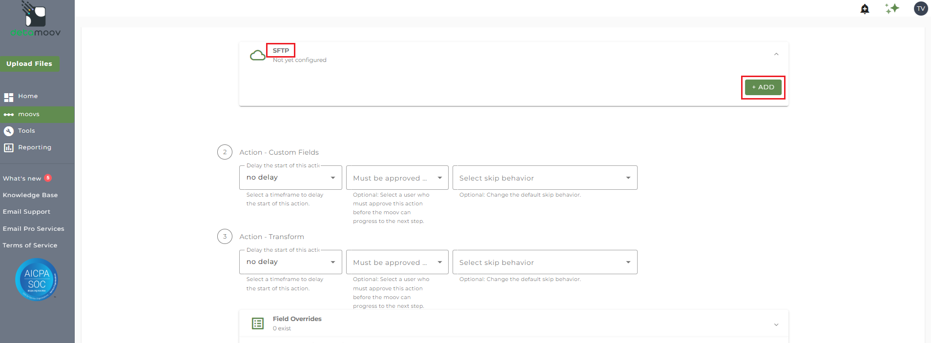 The SFTP credentials required to connect to your client's plan are provided by ADP. Before configuring the client in detamoov, please contact ADP to obtain the credentials for your client's plan and inform them that you will be utilizing detamoov for the integration.