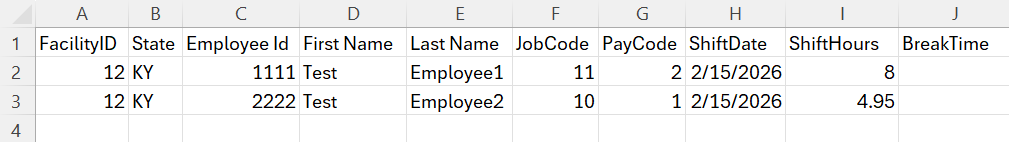 The data below is an example of source data for employee time: