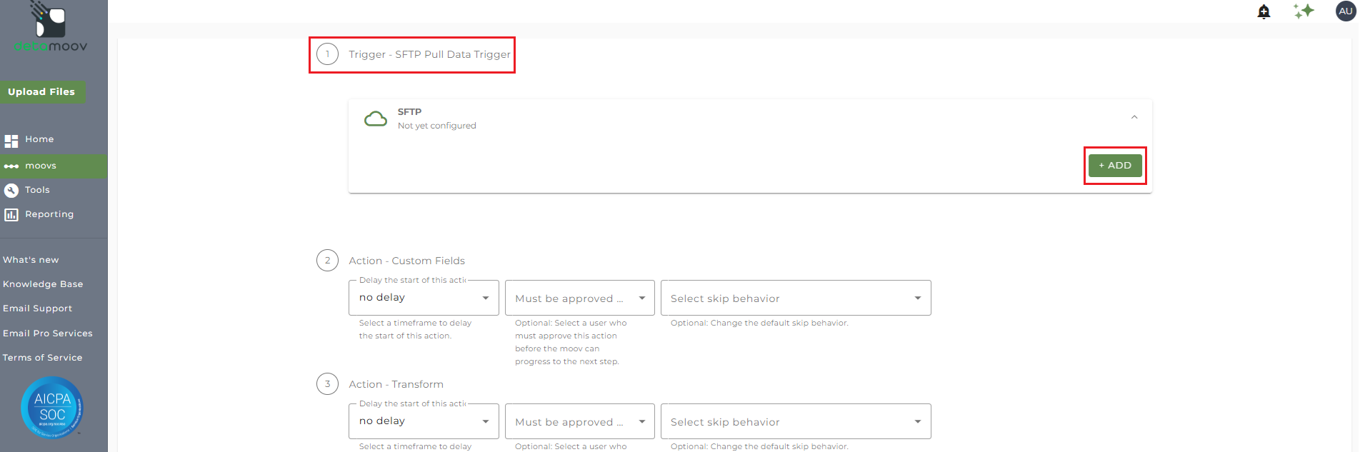 To ensure that the feedback files are pulled, you will need to automate the 360 integration by configuring the SFTP schedule. Click the SFTP banner under the Trigger - SFTP Pull Data Trigger step and click Add.