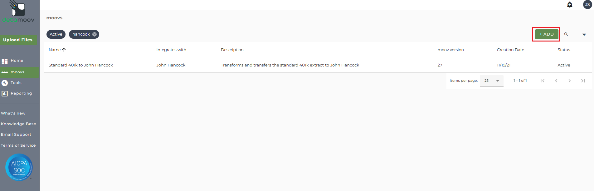 Once you are on the moovs screen you will want to click on the ADD button in the upper right hand side of the screen.