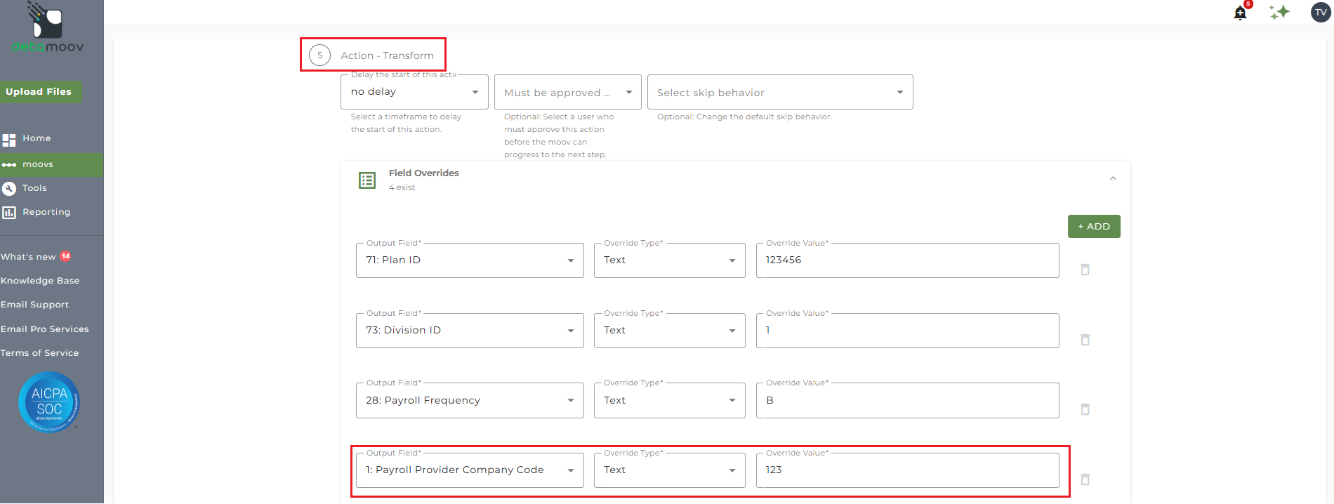 Once the Standard 401k to July Services moov has been added to your account, access the moovs section on the left side menu and click on the Standard 401k to July Services moov.